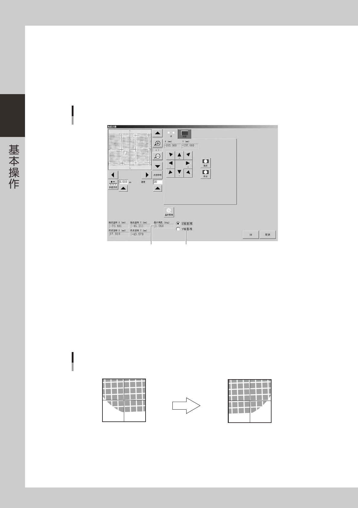 用点示教或光标示教对准想要作为基准的位置后,按 [ 始点 ] 按钮。建议指定元件的角部作为基准位置,