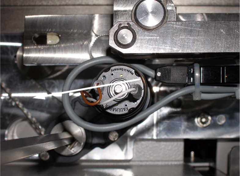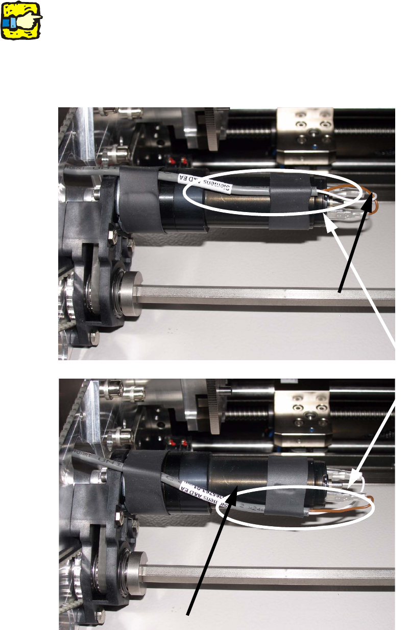 : Drehen Sie das Kabel am Transportbreitenmotor wie auf den beiden Bildern gezeigt nach un-