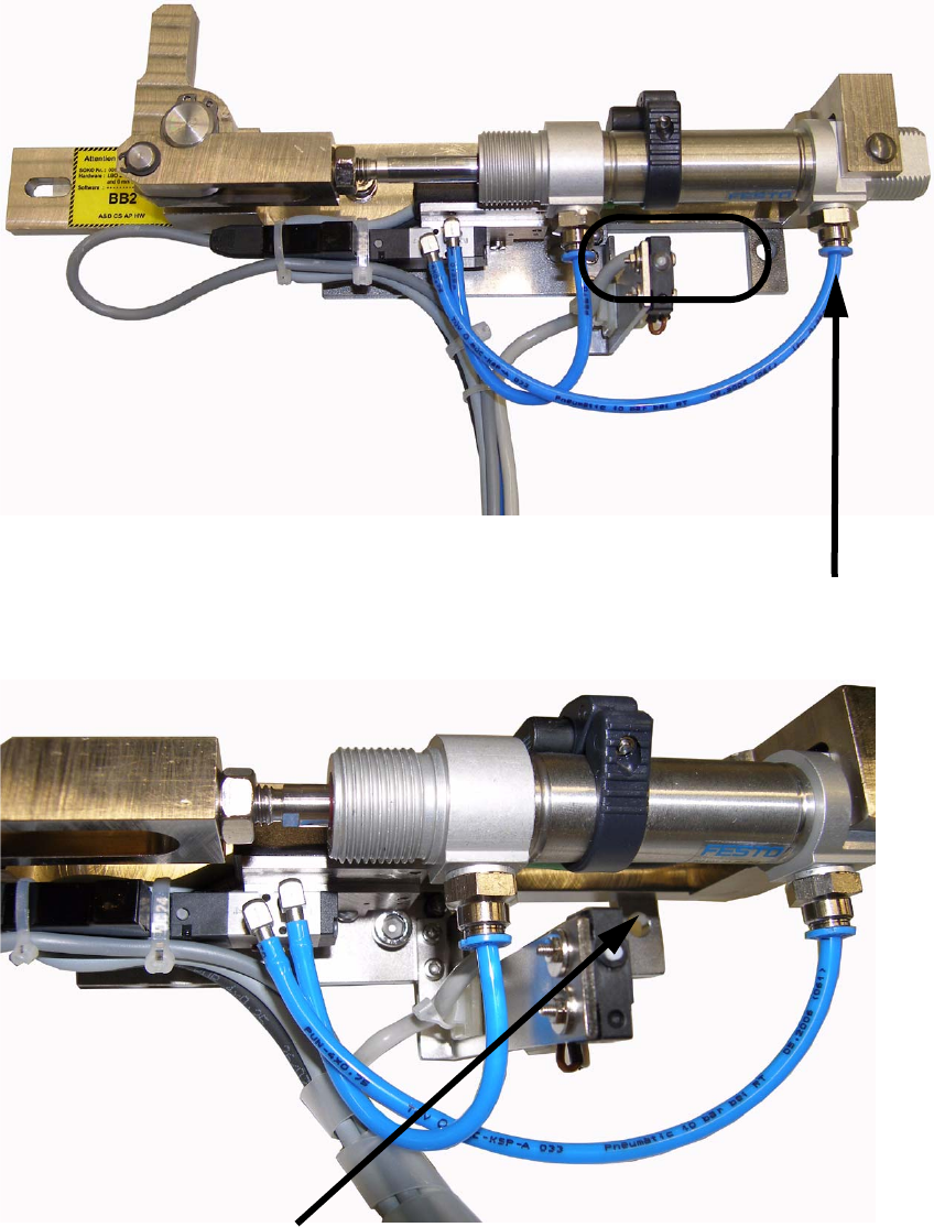 den Alublock. Stecken Sie zuvor den vorderen Pneumatikschlauch am Pneumatikzylinder ab.