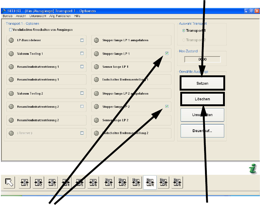 LBO 27" 1 Montageanleitung 27" SIPLACE X4 Ausgabe 09/2007 35 : Wählen Sie nun in der SITEST Grundansicht „Ein- /Ausgänge“. 1 1 : Zum Einstellen der S topper muss der S topper hochgefahren werden. Klicken Sie da…