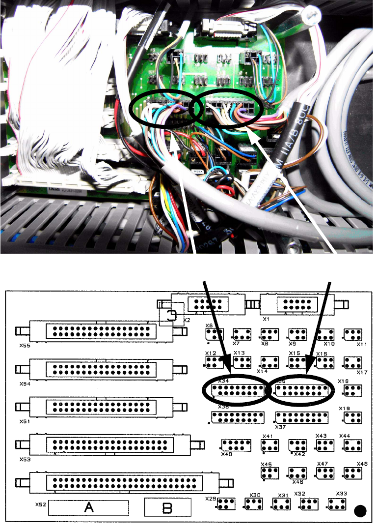 PA2 has to be connected to X35 and the cable from PA1 to X34. See following pictures for de-