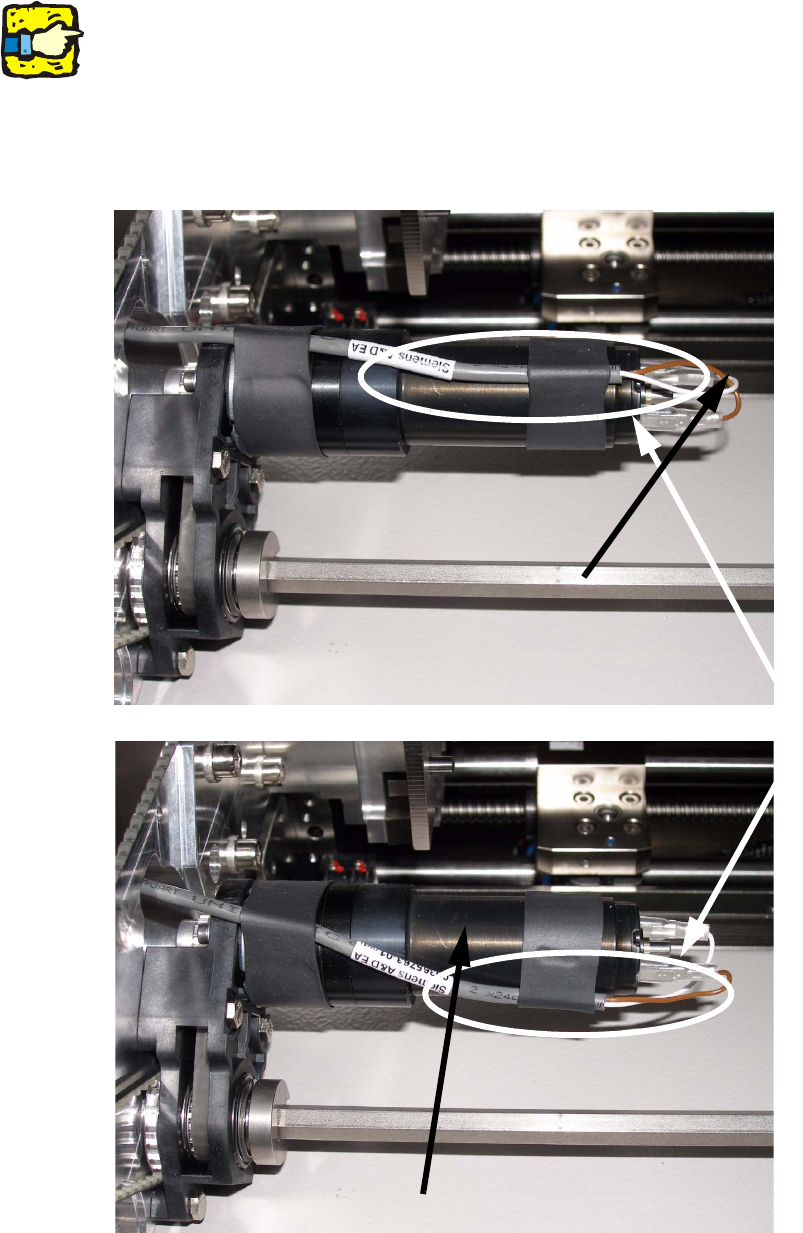 : Turn the cable on the conveyor width motor like shown on the pictures below. This is to prevent