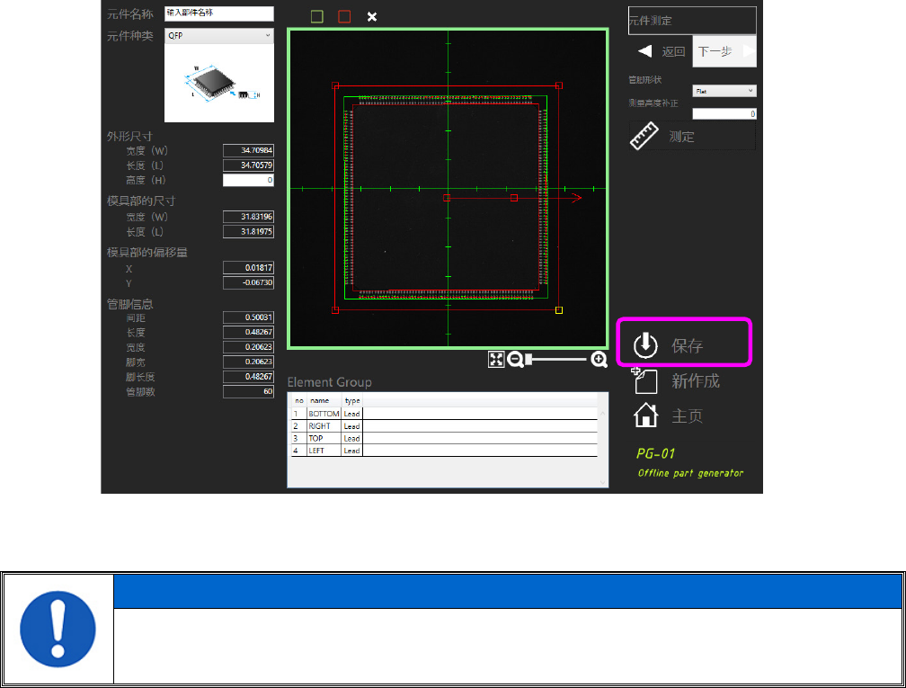 4. 请确认在 PG-01 中作成的数据(元件名称・外形尺寸)后,按下『OK』按钮