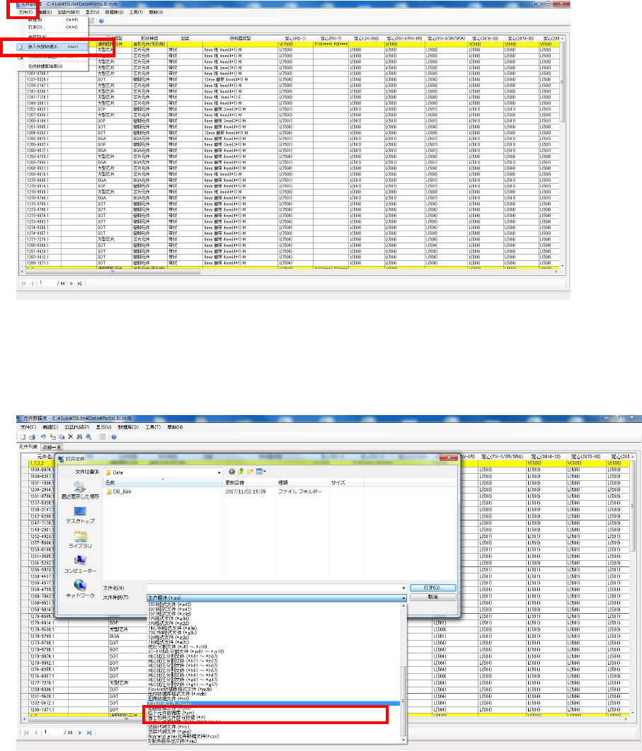 31 5.4. 导入 元件 数据 1. 启动元件 DB ( Comp ON ent Dat abase ) ,使 M DB 文件处于打开状态, 选择读入文件 (F) 菜单的外部数据(导入 XI ) 2. 在打开文件对话框的文件种类中选择『图像数据文件( *.CSV )』 ,选择有对象 csv 文件的驱动器和文件夹