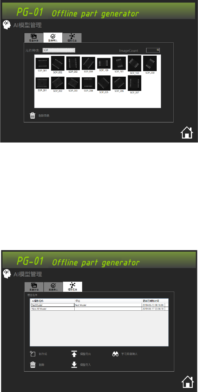 按下主画面的[AI 模型]按钮。显示出机械学习模型管理画面。
