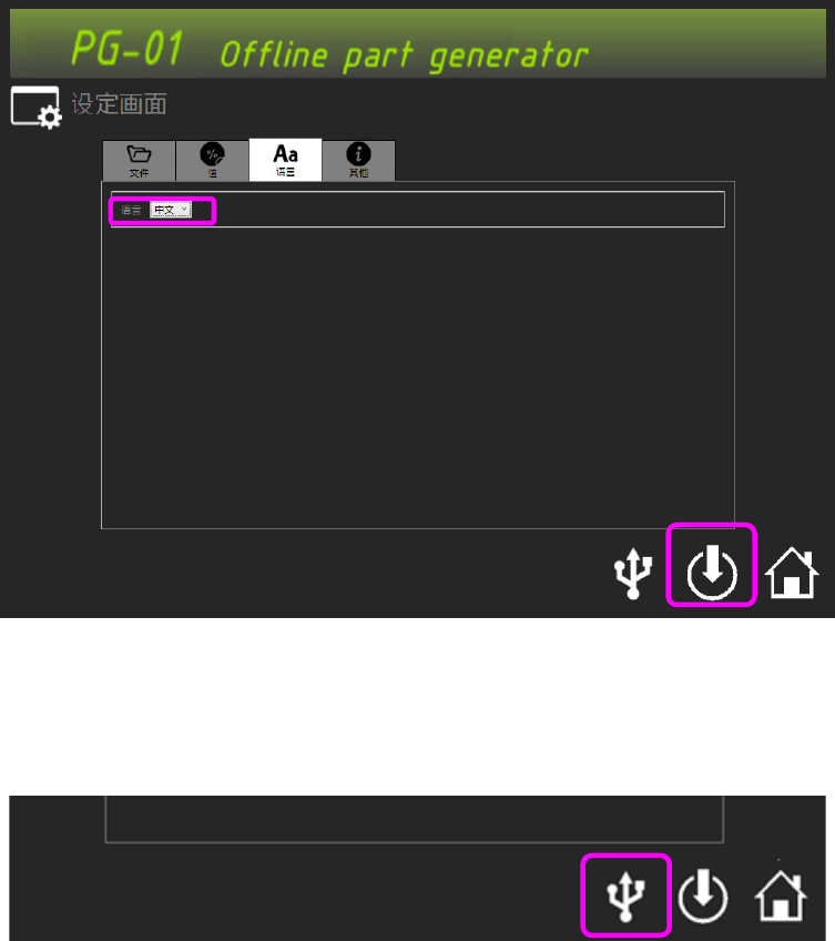 43 7.3. 切 换语 言 请选择设定画面的[语言]页面。 ① 请选择语言。 ※不保存设定时,下次启动时将返回上次保存时的语言状态 7.4. U SB 的 切断 ① 请按下 U SB 按钮。