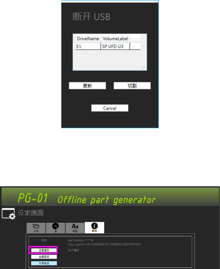 ② 将显示出 USB 切断对话框。