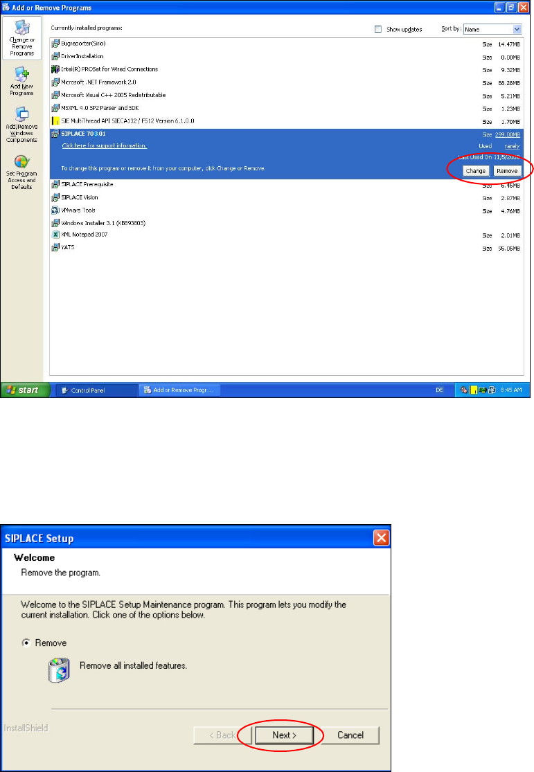 → Select SIPLACE from the list of installed programs.