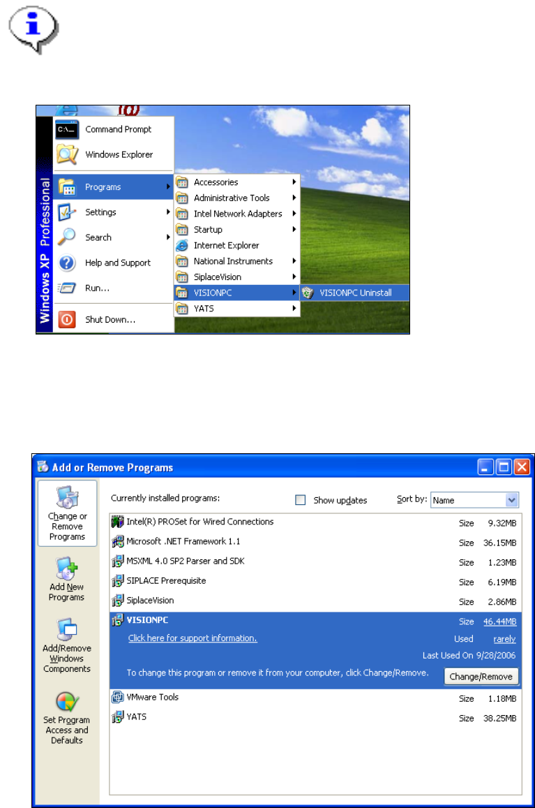 → Open the Start menu and choose Programs Æ VISIONPC Æ VISIONPC Uninstall.