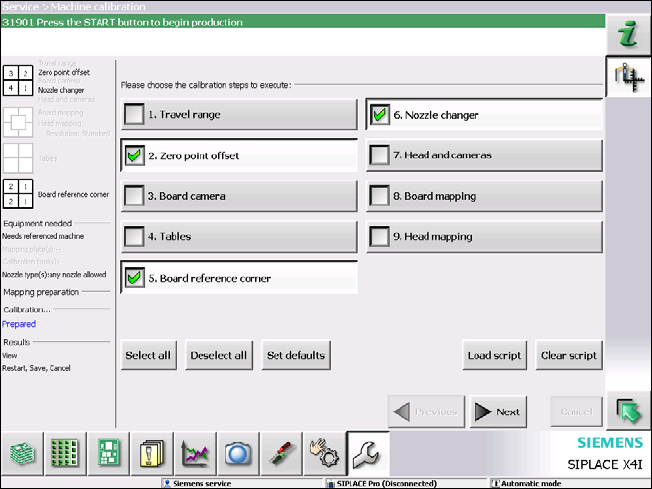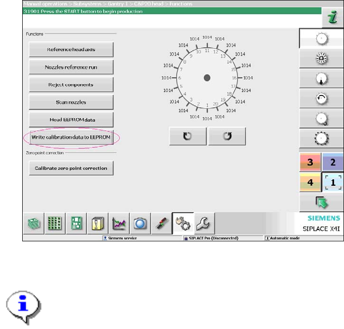 - A calibration nozzle (1235) has to be available on every placement head at segment 1.