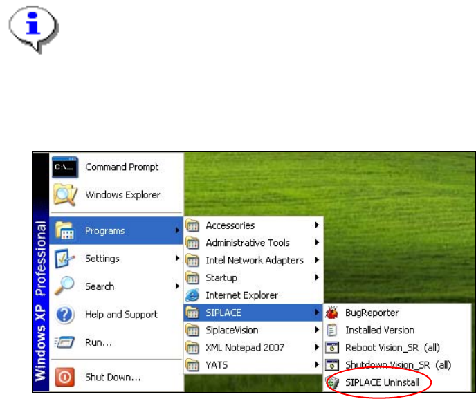 → Open the Start menu and choose Programs Æ SIPLACE Æ SIPLACE Uninstall.