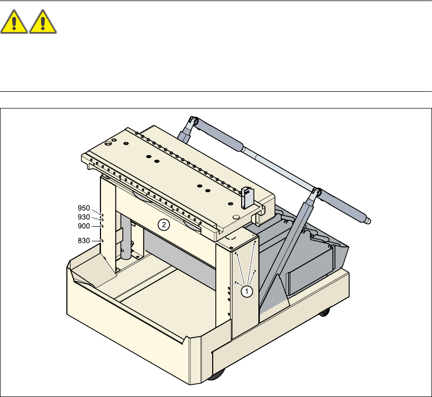 Æ Lazítsa meg az alkatrészkocsi mindkét oldalán a négy rögzítőcsavart (lásd 4.3 - 1 ábra, 1.