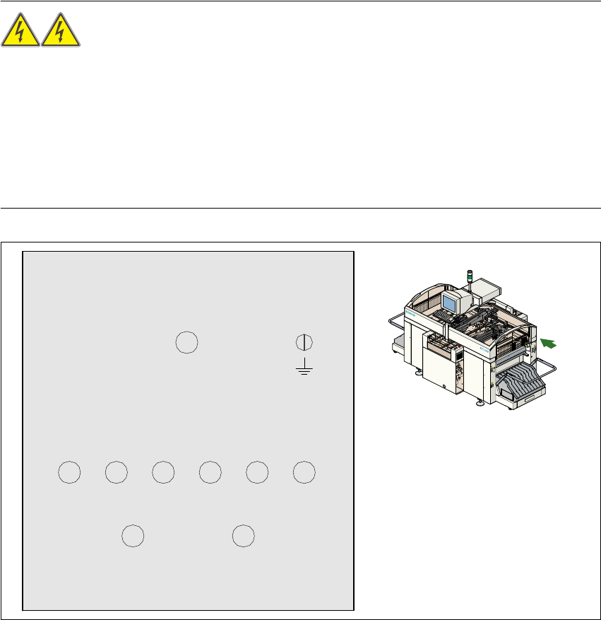 A SIPLACE-család automatái 3 x 400 V~ (3 x 208 V~ USA -Verzió) ± 5 %, 50/60 Hz hálózati fes-