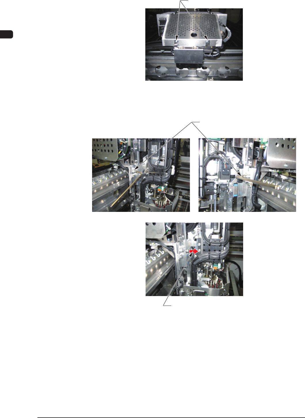 (2) Attach the Jigs No. 1 and No. 2 onto the three locations as shown in the