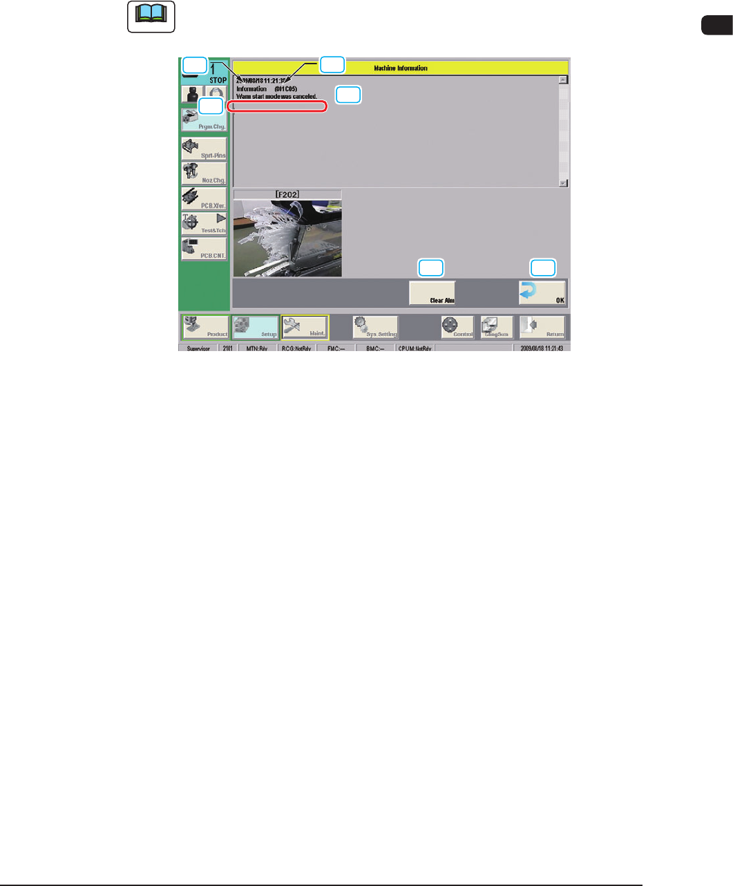 4OM-1603 2-26 3. Machine Information : Chap.2 3.2 Machine Information List Machine Information Code Display Area A (The outline of the Machine Information) Display Area B (The details of the Machine Information) 800301 W…