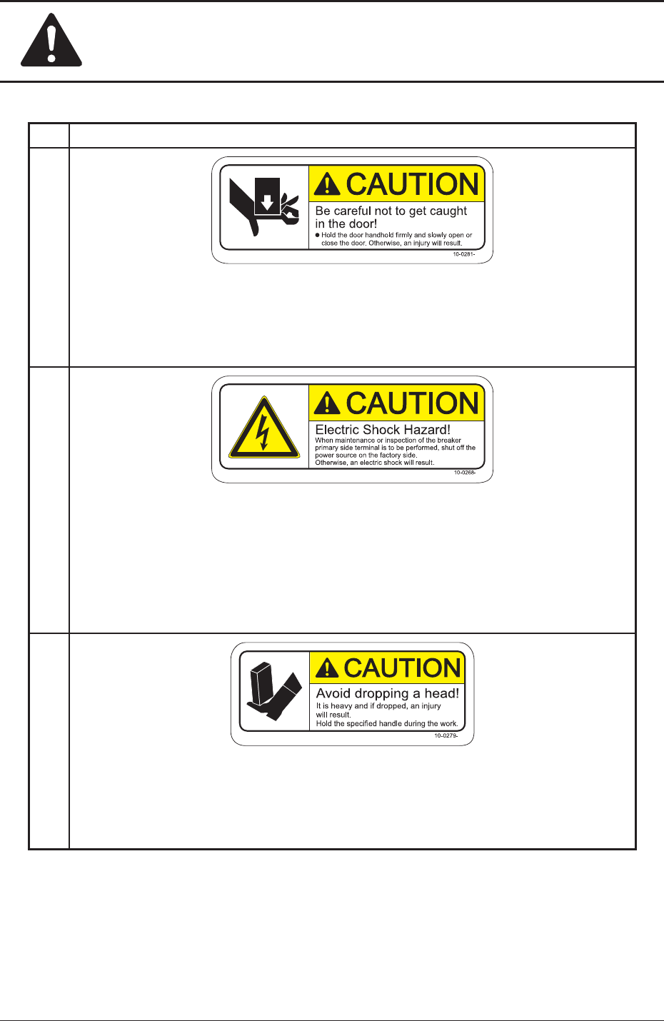 Safety Precautions Safe-26 1OM-1603 1 108-005 5. Alert Labels No. Alert Labels and Description (4) Description Only well-trained service personnel shall replace the cutter blades. Otherwise, a hand injury , etc., will …
