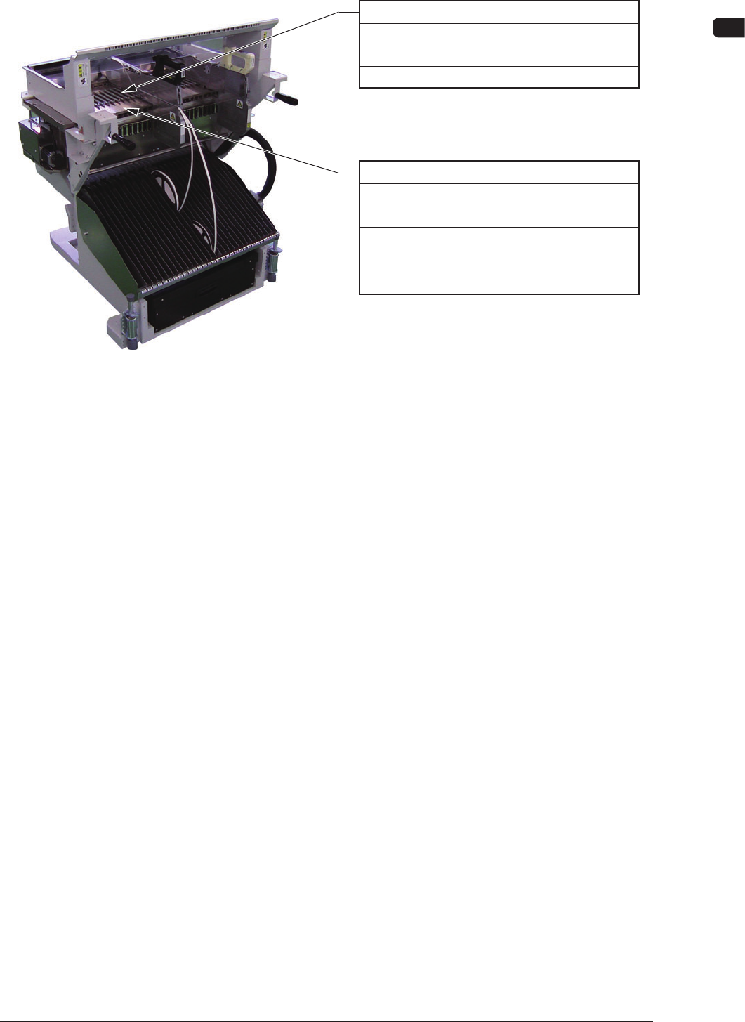 4OM-1603 1-25 3. Maintenance Spots : Chap.1 1003-003 3.2.5 Feeder Cart Section Groove on Feeder Base Every W eek Cleaning Required T ime :2 minutes Suck dirt and dust wit ha vacuum cleaner . Upper Surface of Feeder Base …