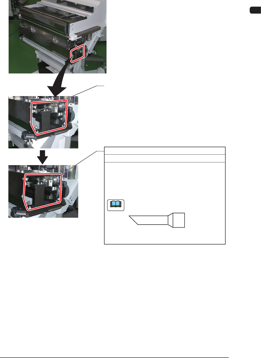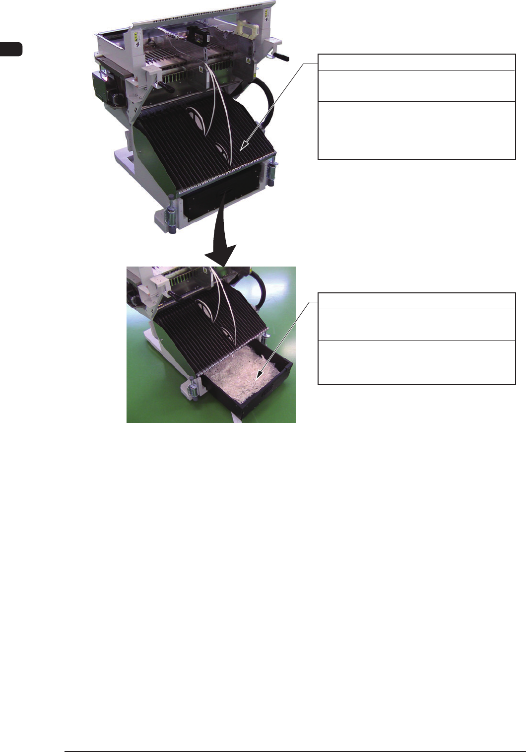4OM-1603 1-27 3. Maintenance Spots : Chap.1 1003-003 3.2.6 Feeder Cart Section (Cutter) Remove the screw on the other side. (12 locations) Cutter Box Inside Every W eek Cleaning (1) Detach the bank feeder change cart. (2…