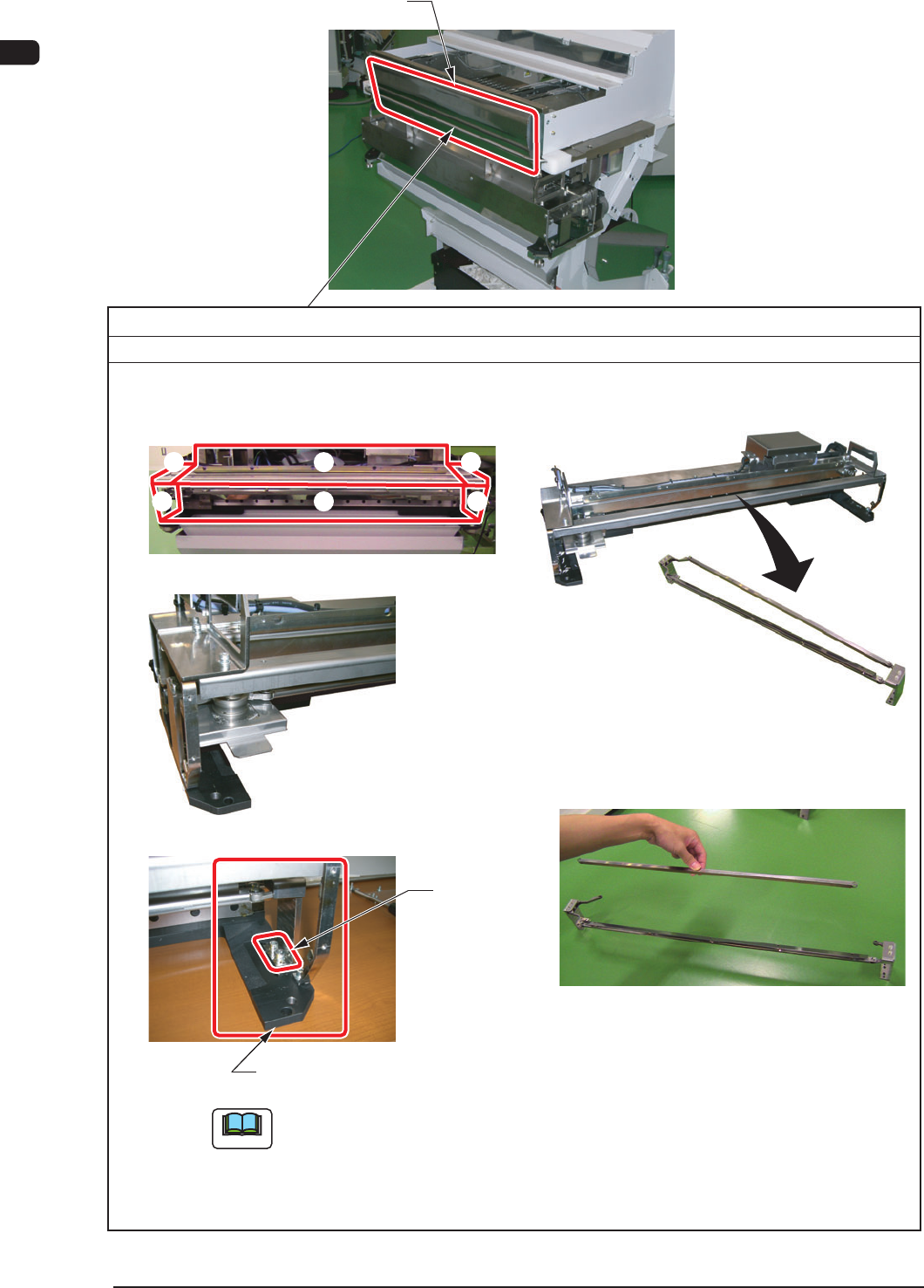 4OM-1603 1-32 3. Maintenance Spots : Chap.1 Note (3) Attach the cutter blade cover. (1) Remove the front safety bar and take out the cutter from the cart. ② ⑥ ① ④ ⑤ ③ ③ ② ⑥ ⑤ Front Safety Bar Urethane Clamp (2) Remove th…