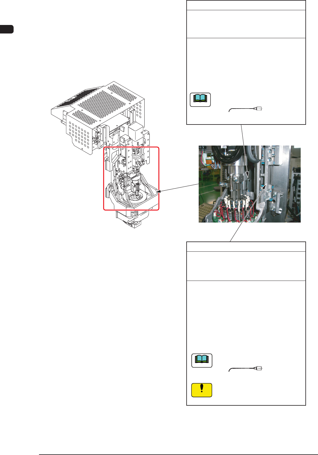 4OM-1603 1-34 3. Maintenance Spots : Chap.1 Notice Head U/D Ball Screw (HL Axis) (1) Wipe of f the old grease with a rag and apply a small amount of new grease to the groove of the ball screw with a syringe (2) After lub…