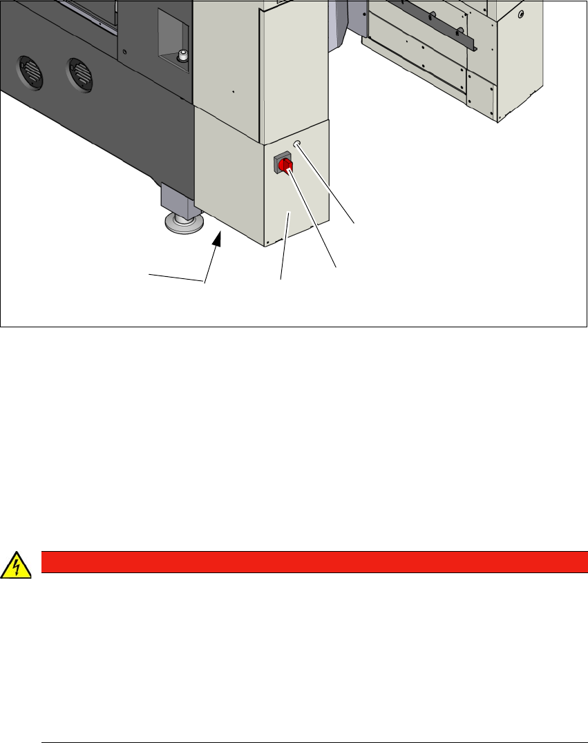 《用户手册》 SIPLACE SX1/SX2 4 设置与调试 使用软件版本 SC.710.0 或更新 版本 12/2016 4.2 安装位置的基础设施 175 4.2.3 主电源 4 图 4.2 - 3 贴片机中电源的位置 (1) 侧面保护盖 (2) 保护 锁 (3) 主电源开关已锁定,防 止再次打开电源 (4) 保护盖后的供电单元 (5) 主电源连接电缆 4.2.3.1 危险提示 4 (1) (2) (3) (4) 危险 危险电压等级…