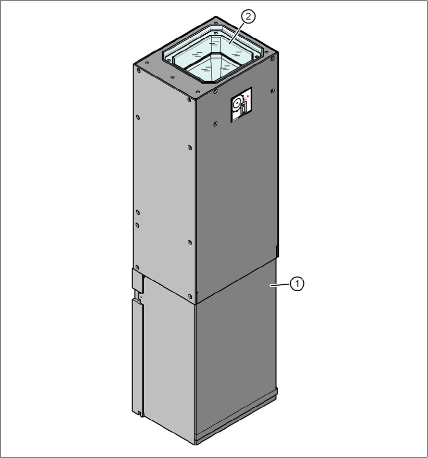 《用户手册》 SIPLACE SX1/SX2 6 工作站扩展部件 使用软件版本 SC.710.0 或更新 版本 12/2016 6.13 静止摄相机 335 6.13.2 静止元件摄像机 (P&P,33 型,55 x 45,数字) 项目编号:03105198 -xx C PP 贴片头的静止摄相机,33 型 6 图 6.13 - 2 静止 P&P 元件摄相机 (33 型, 55 x 45,数字)的结 构 (1) 带集成摄相…