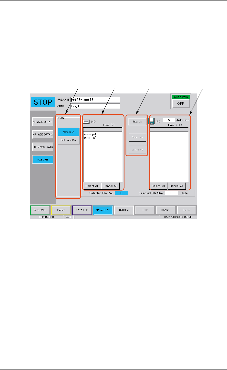 When the [File Operation] button is pressed on the machine per-