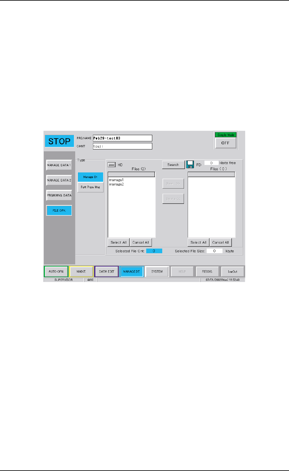 When the [File Operation] button is pressed on the machine per-