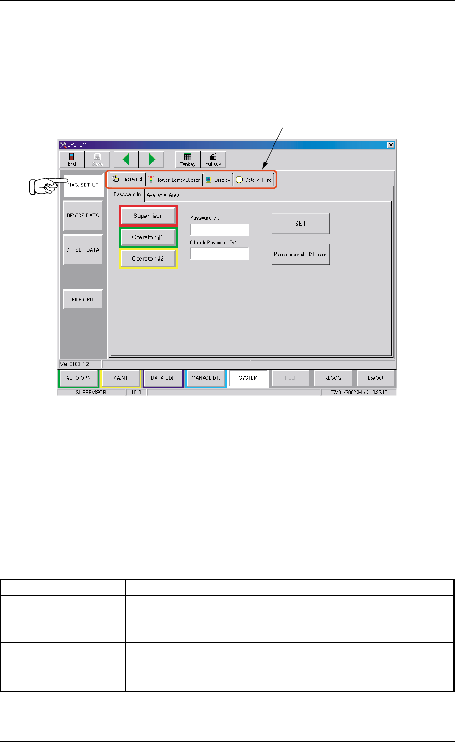 When the [Password] tab is pressed in the "MAC. SET-UP" win-