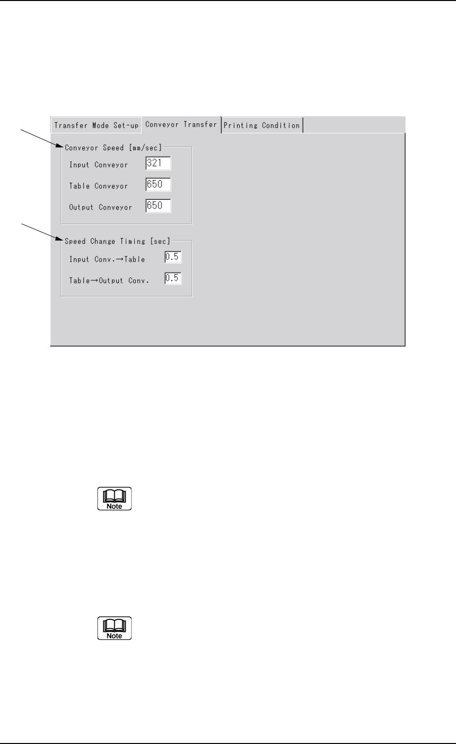 When the [Transfer Conveyor] tab is pressed in the "Device Data"