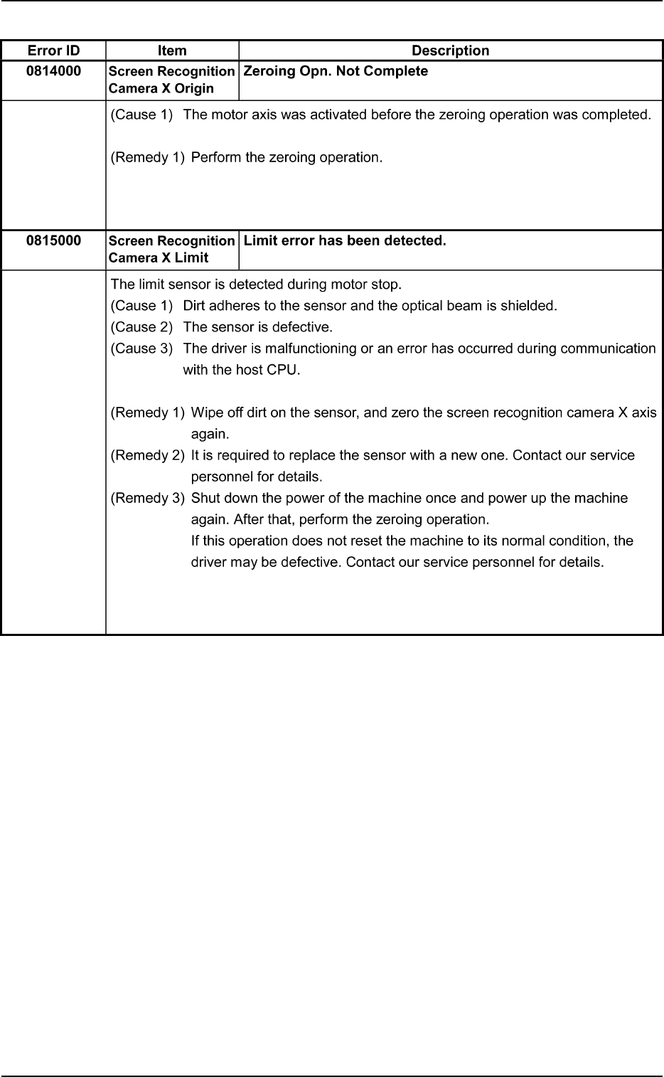 When the same error still occurs, contact our service personnel for de-