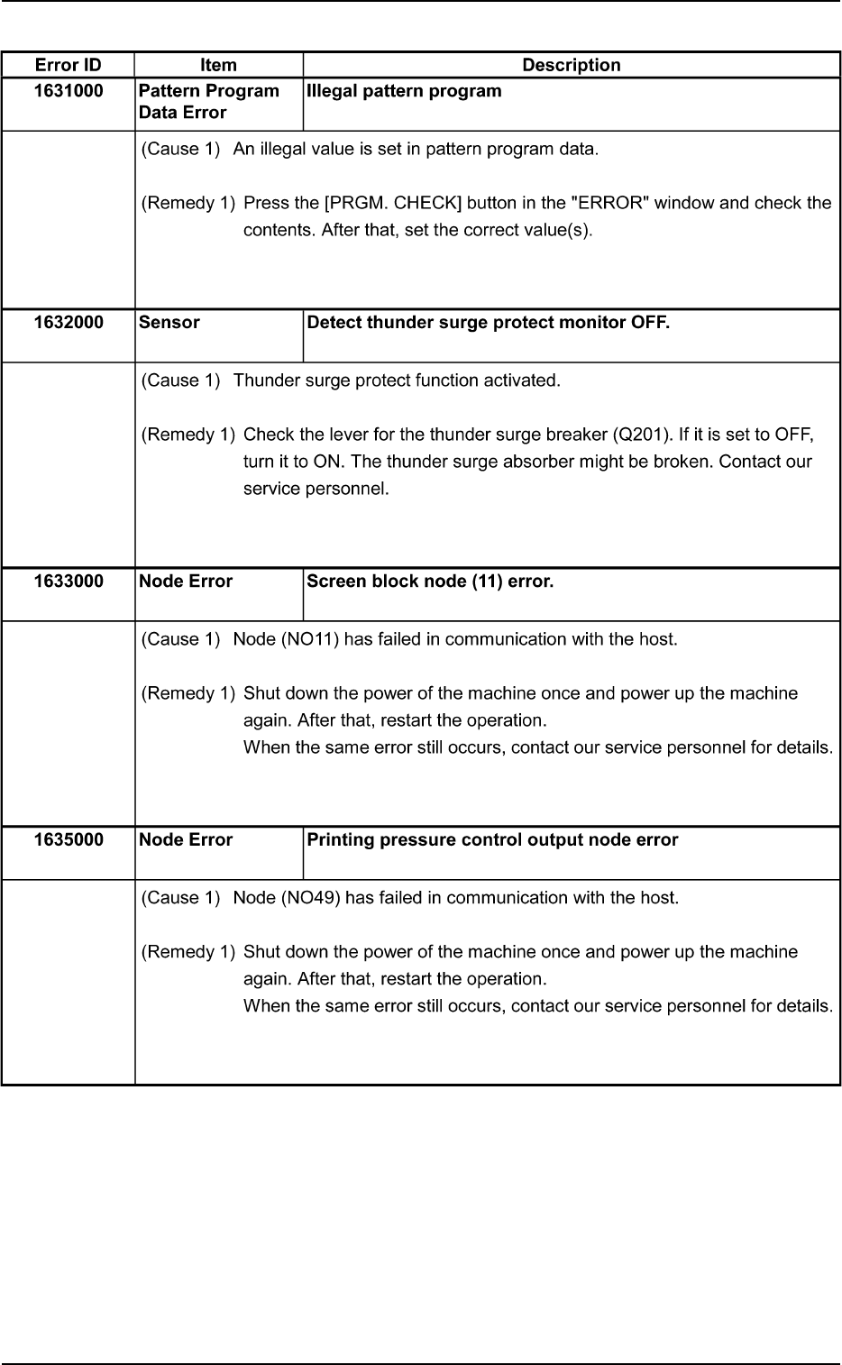Tg0699-PM-D2 2.3 Error IDs and Remedial Procedures 0207-001 Chapter 2 2-77 T able 4B75 Error ID Item Description 1619000 Pattern Program Data Error 1620000 Pattern Program Data Error 1621000 Pattern Program Data Error 16…