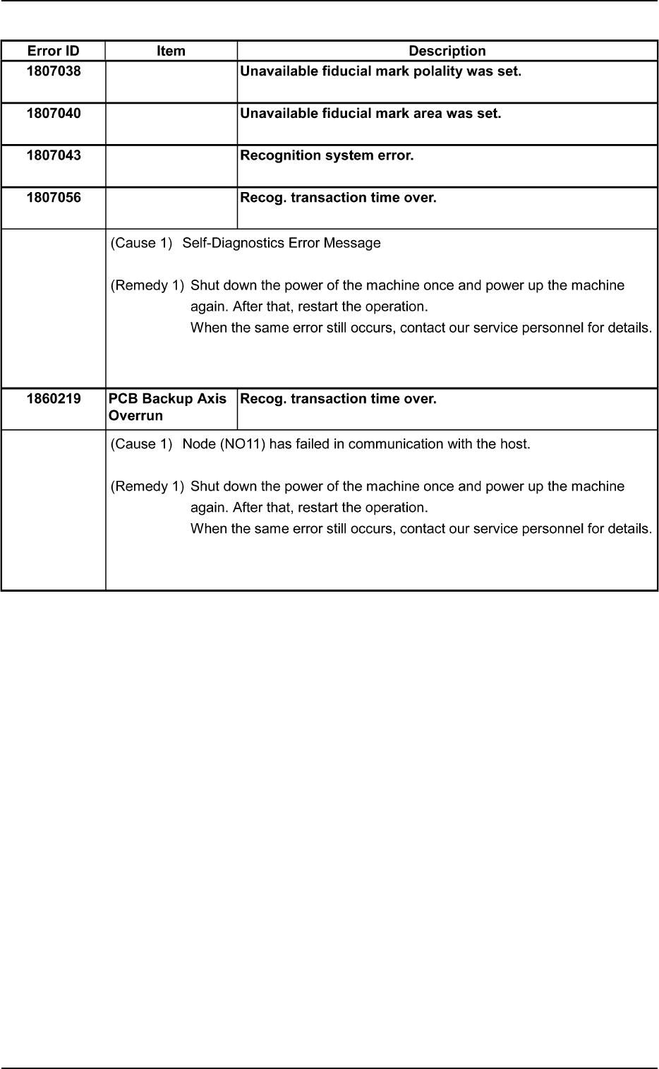 Tg0699-PM-D2 2.3 Error IDs and Remedial Procedures 0207-001 Chapter 2 2-91 T able 4B89 Error ID Item Description 1901000 Screen Fiducial Mark #1 1901001 Screen [Camera ID] exceeds the range of setting. Fiducial Mark #1 (…