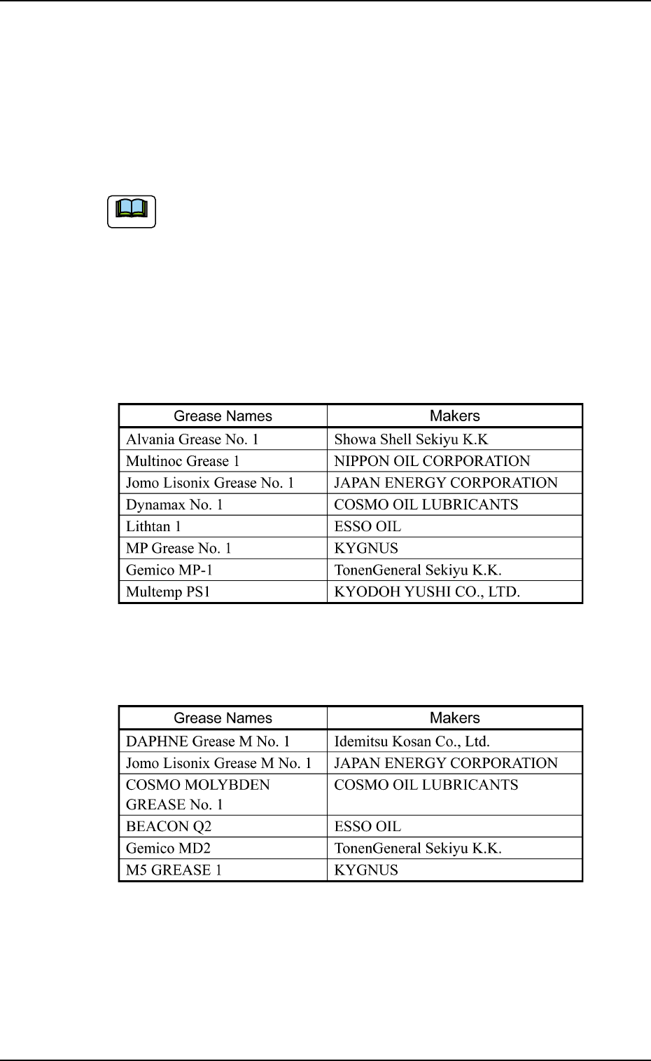 • DAPHNE EPONEX GREASE No. 1 (Idemitsu Kosan Co., Ltd.) or