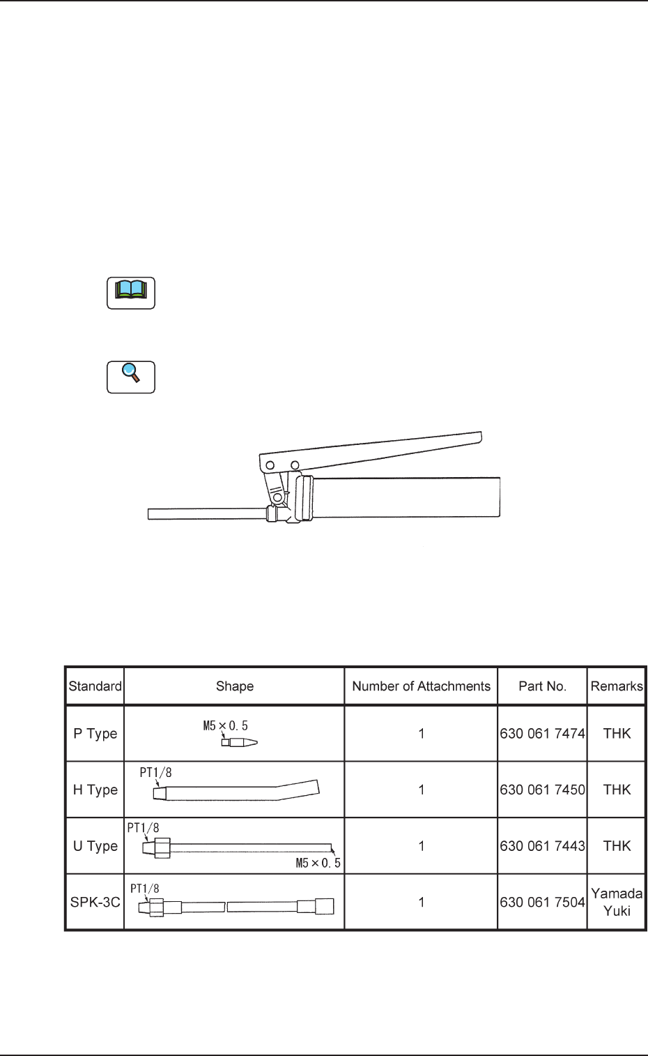 Refer to the attached instruction manuals for the hand grease gun for the
