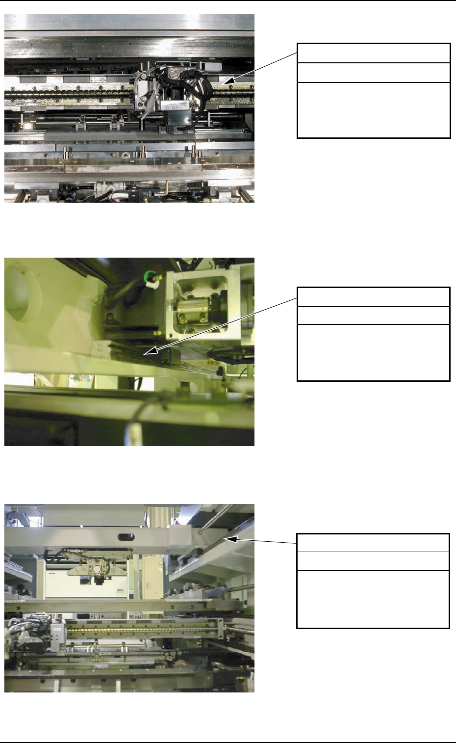 Tg0699-PM-D2 Fig. 5A26 P .E.C. Recognition Section Fig. 5A27 P .E.C. Recognition Section Fig. 5A28 Squeegee Head Section 6. Monthly Maintenance 0207-001 Chapter 3 1-22 X-Axis Linear Guide Clean the guide from the rear si…
