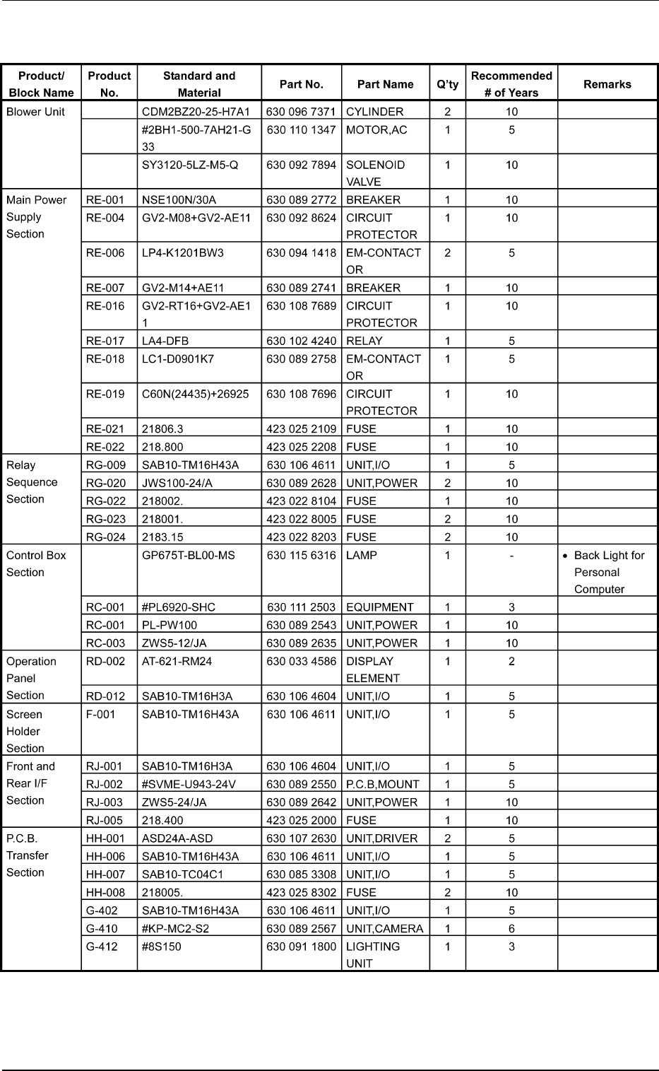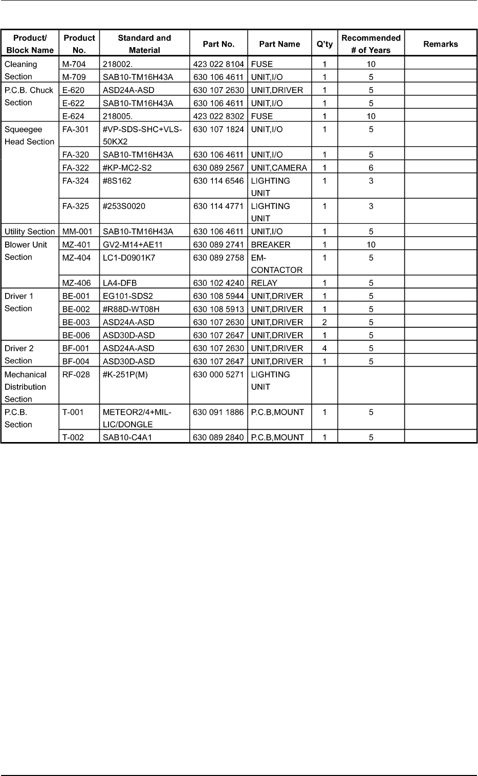 Tg0699-PM-D2 0207-001 Chapter 3 2-8 2. List of Servicing Parts T able 3B8