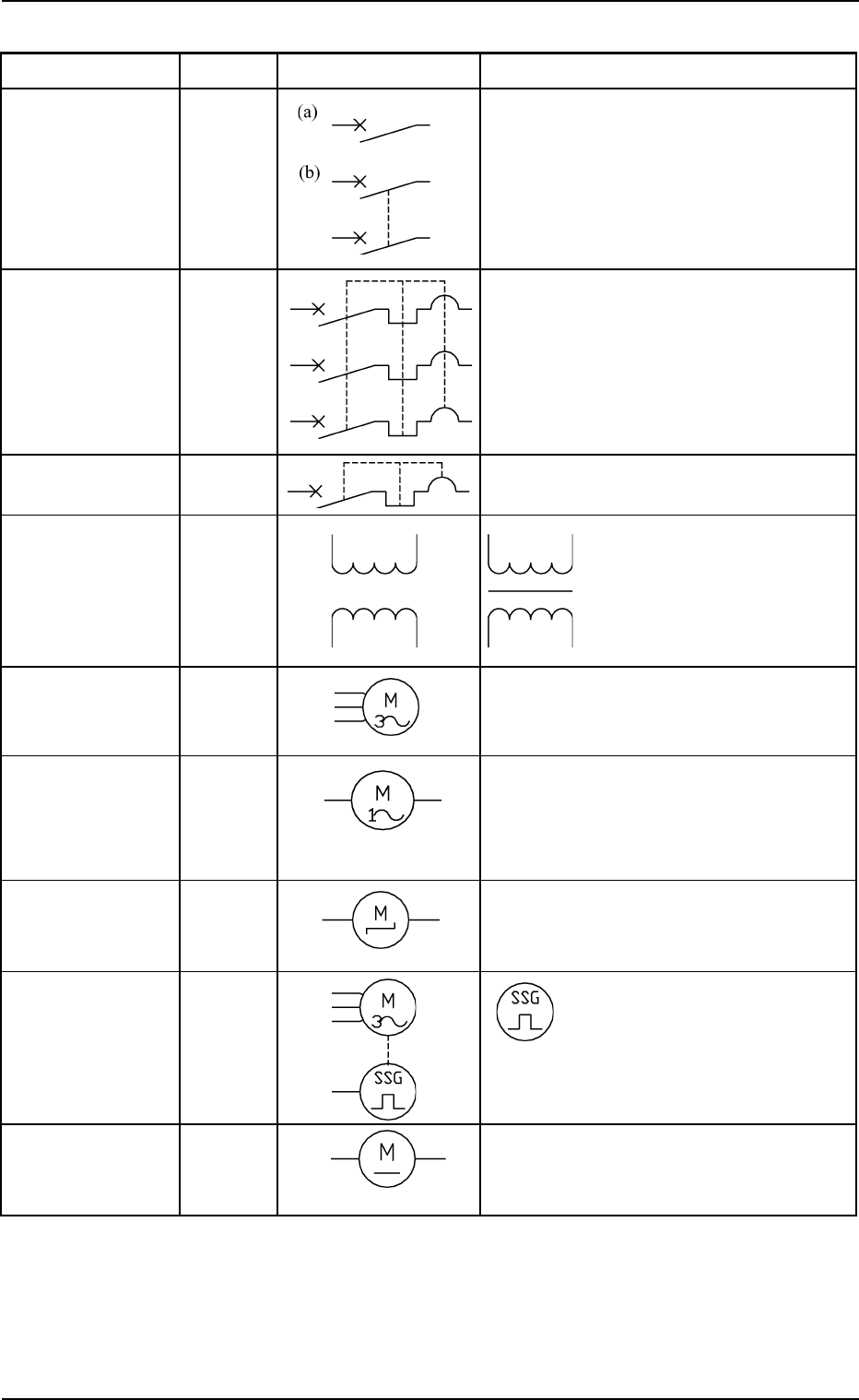 0207-001 Chapter 3 3-41 Tg0699-PM-D2 4.1 Electrical and Electronic Symbols Name Symbol Graphic Symbols Remarks Air-Break Switch Breaker Q* Circuit Breaker Q* Circuit Protector T ransformer T* T ransformers with iron core…