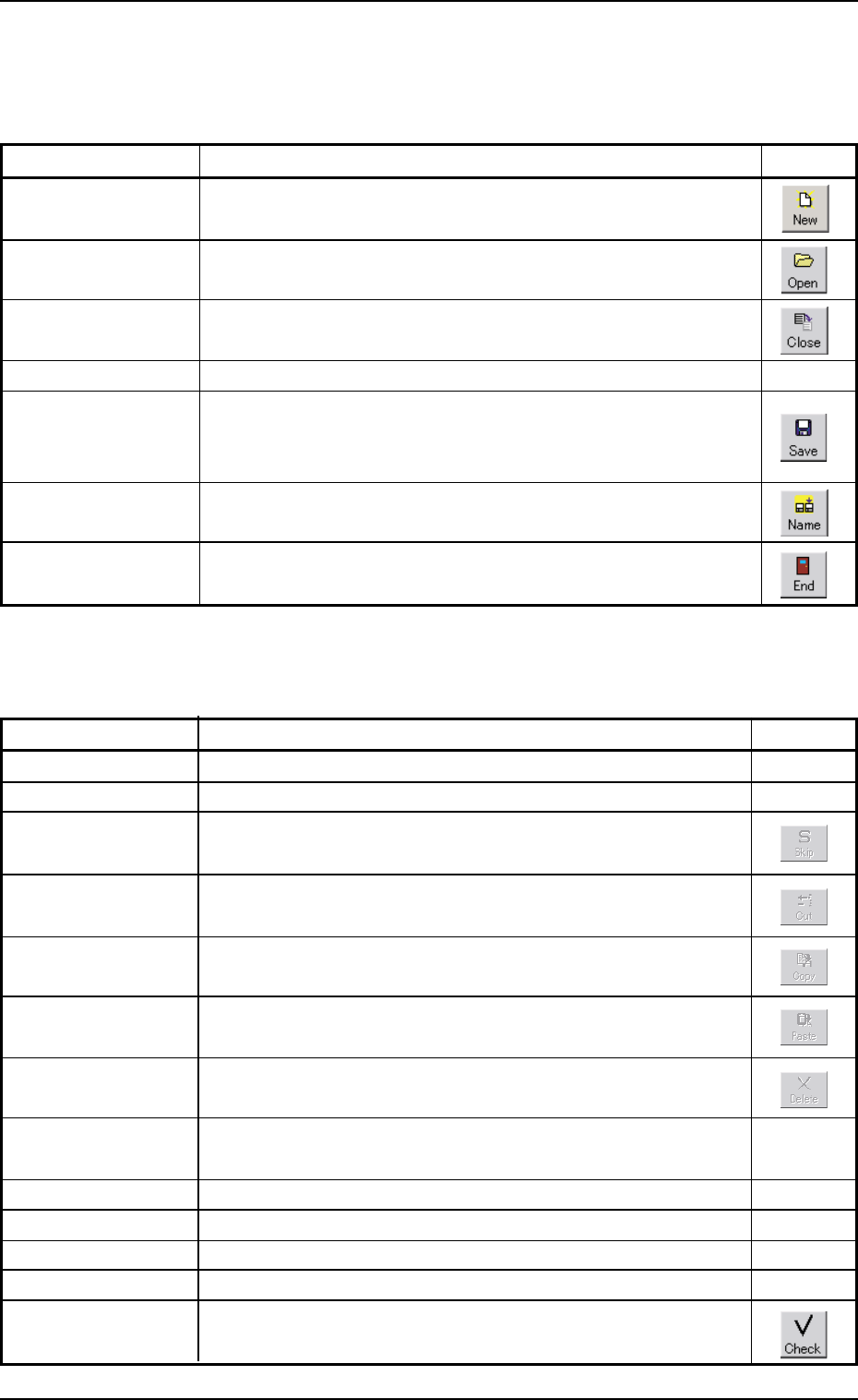 Tg0699-PM-D2 (1) Functions of Menu Bar and T oolbar "File" Menu T able 3B4 Command Menus Functions Icons New Prgm. This makes it possible to newly create a pattern program. Open... This displays a saved "P…