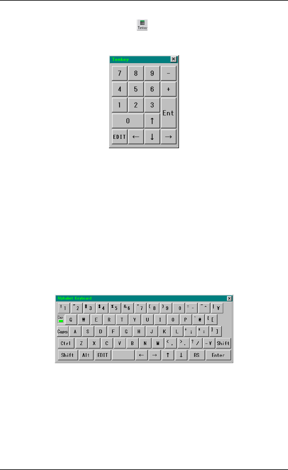Tg0699-PM-D2 0207-001 Chapter 1 2-37 2.1 Navigations in Window (2) Entry of Numerical V alues When the "T enkey" icon on the toolbar is pressed, the following ten-key window appears. Fig. 3B78 T en-key Window F…