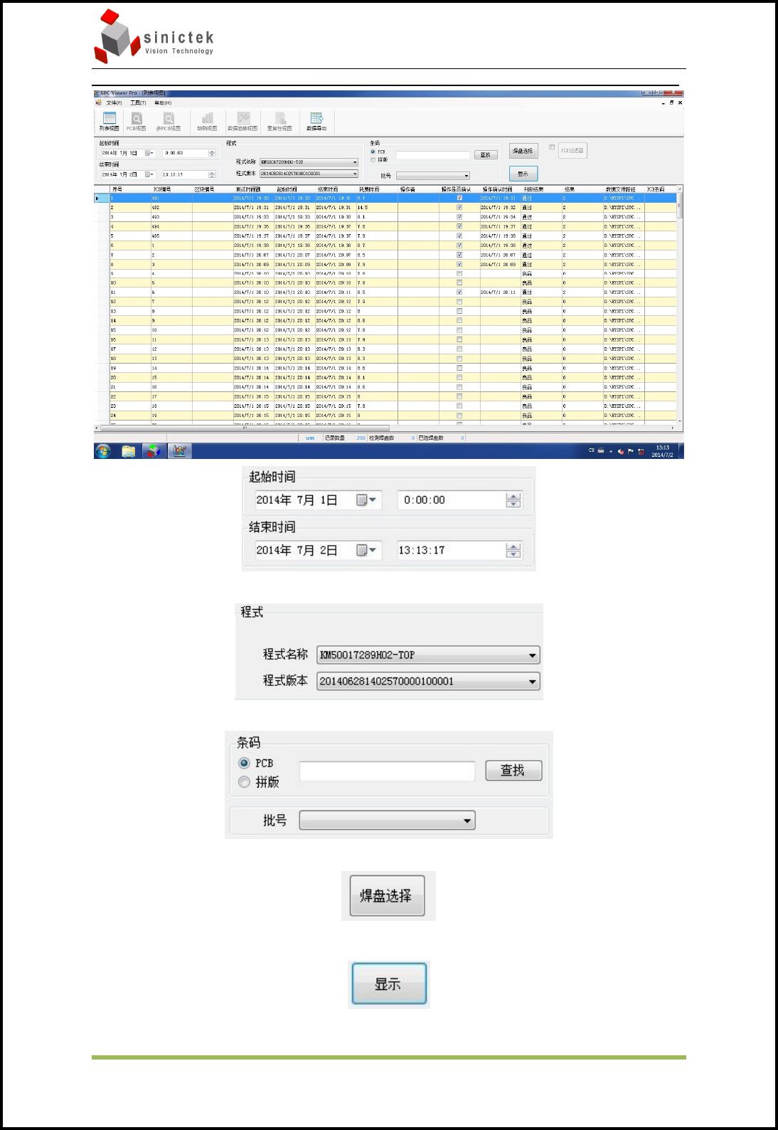 Sinic-T ek 操作手册 思泰克光电 科技有限公司 33 / 49 Co pyright by Sinic-T ek V ision T echnology Co., Lt d. 5.3 过程 控制软件 S PC 5.3.1 列表显示