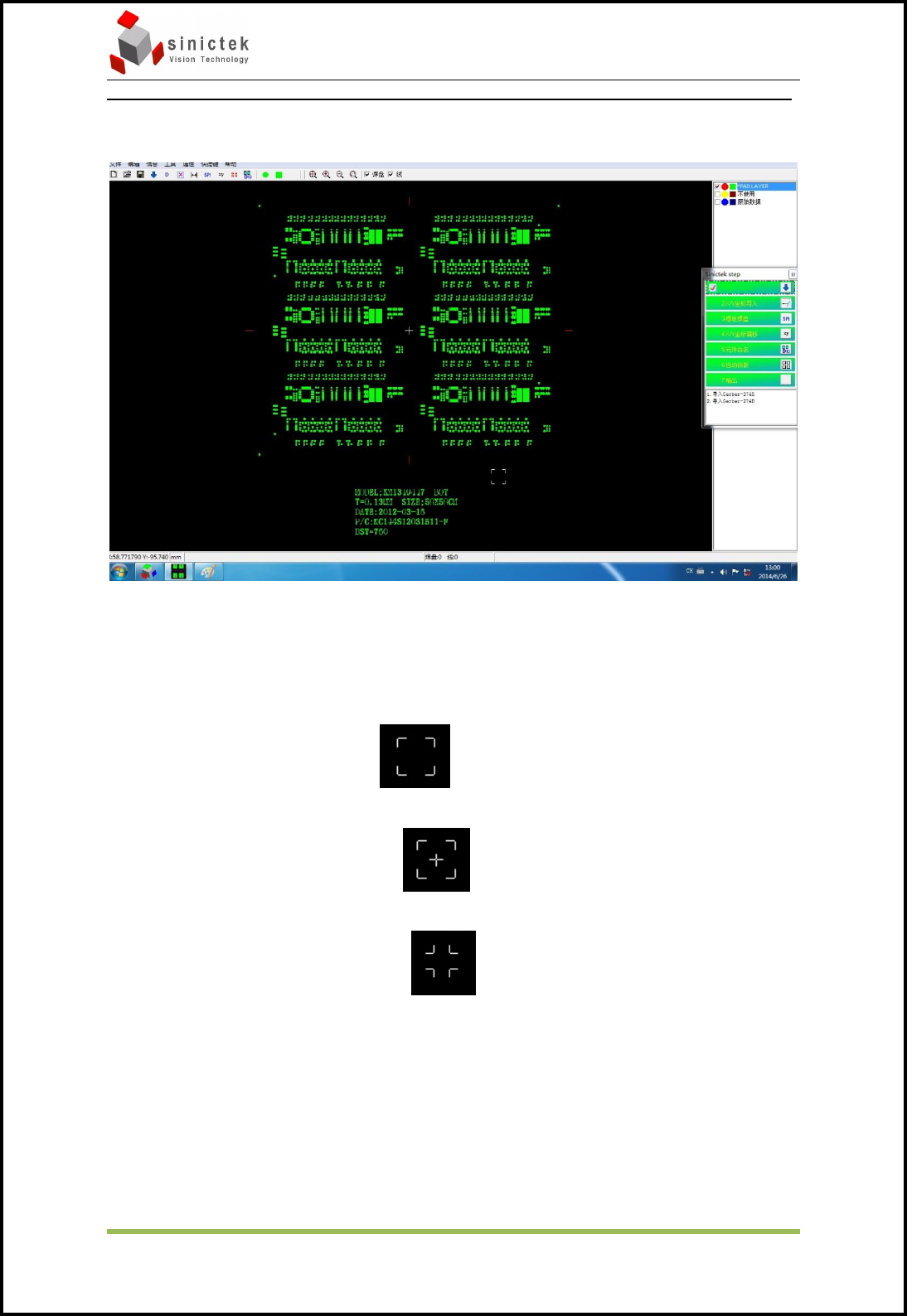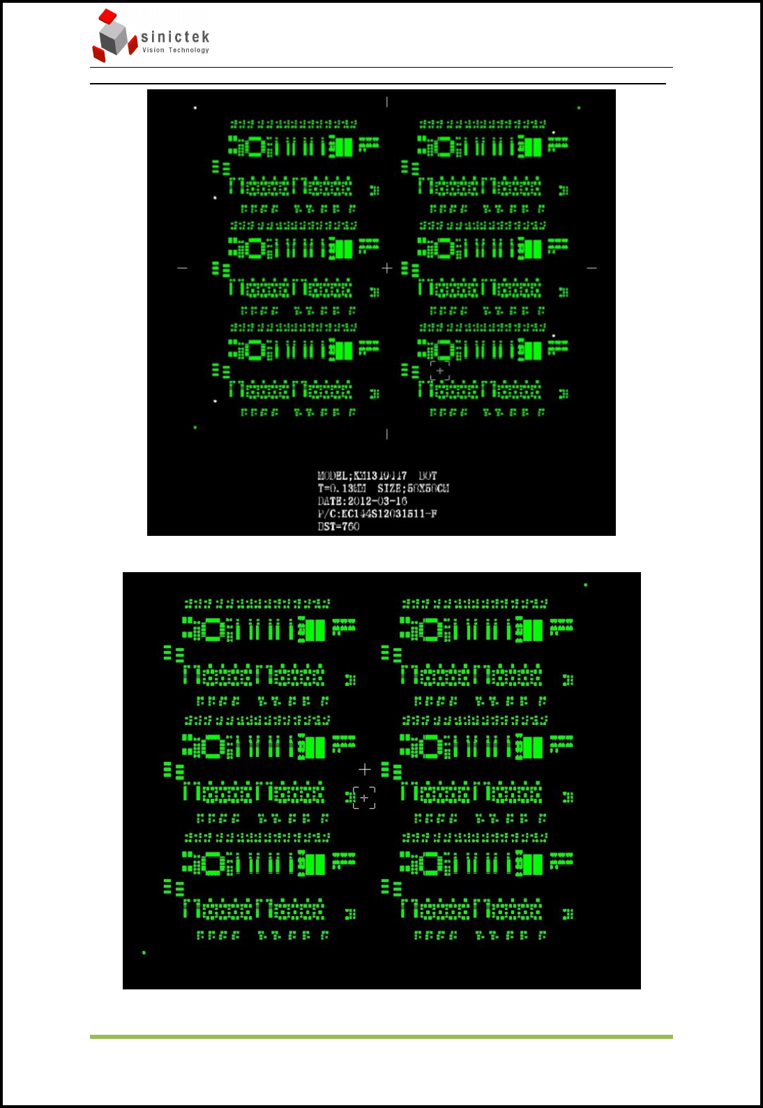 Sinic-T ek 操作手册 思泰克光电 科技有限公司 8 / 49 Copyrig ht by Sinic- T ek V ision T echnology Co., L td. 打开后图形显示 4.1.2 删除 线 这里选择的方法有三种分别为 a) 键盘按 W 鼠标会变化为 然后框选不需要的焊盘(这里焊盘和线 必须全部被框选住才算选中) 按 D 或者 delete 删除选中的线和焊盘 b) 键盘按 W+C 鼠标会变化为 然后框选…