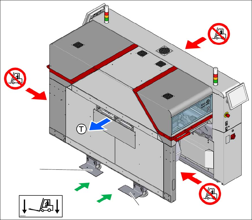(3) Never lift the placement machine at the component trolley locations with a fork-lift! Risk of tilt-
