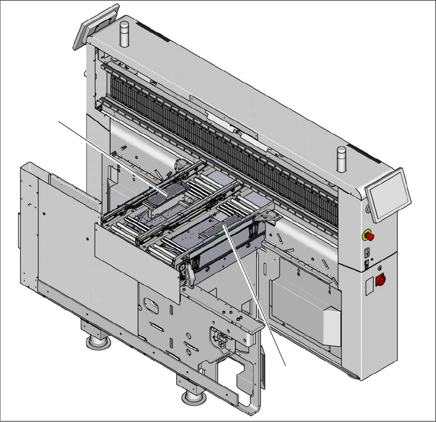 Fig. 1.4 - 2 Vacuum tooling with additional fiducial rail on dual conveyor