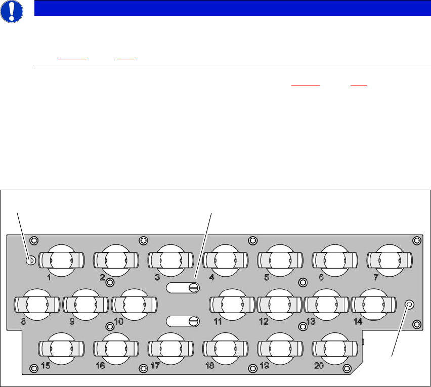 Fig. 6.1 - 10 Nozzle magazine - holder numbering, fiducials for determining the position and angular position