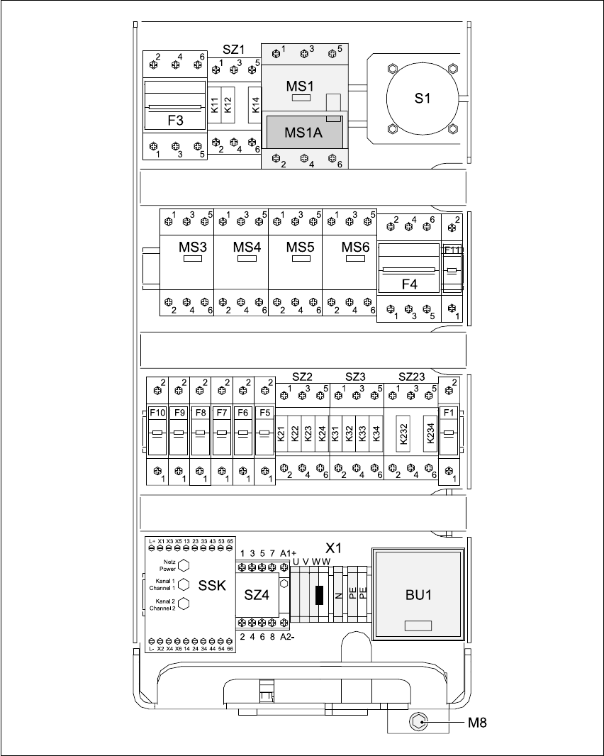 Power supply S-20/S-23HM/F4/F5/F5H M/S-25HM/HS-50 Conversion Instruct ions 4.4 Converting the power supply from 3 x 400 VA C to 3 x 204 V ~ 03/2001 E dition 112 Fig. 4 - 2 Power s upply unit front v iew MS1 Mot or ci rcu…