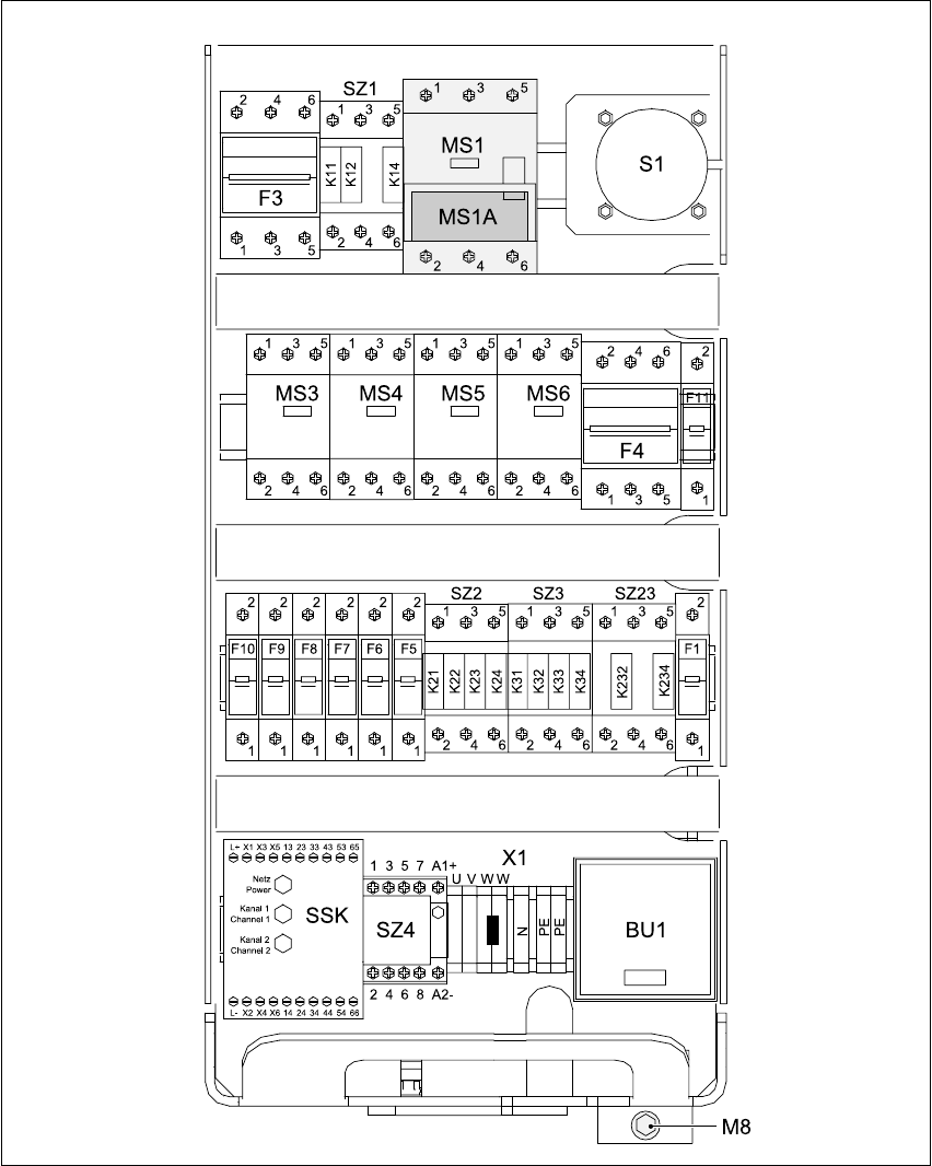 S-20/S-23HM/F4/F5/F 5HM/S-25HM/HS- 50 Conversion Instructions Power supply 03/2001 Edition 4 Converting the power supply unit on HS-50 placement m achines 121 Fig. 4 - 12 Power supply unit - front view MS1 Motor circui t…