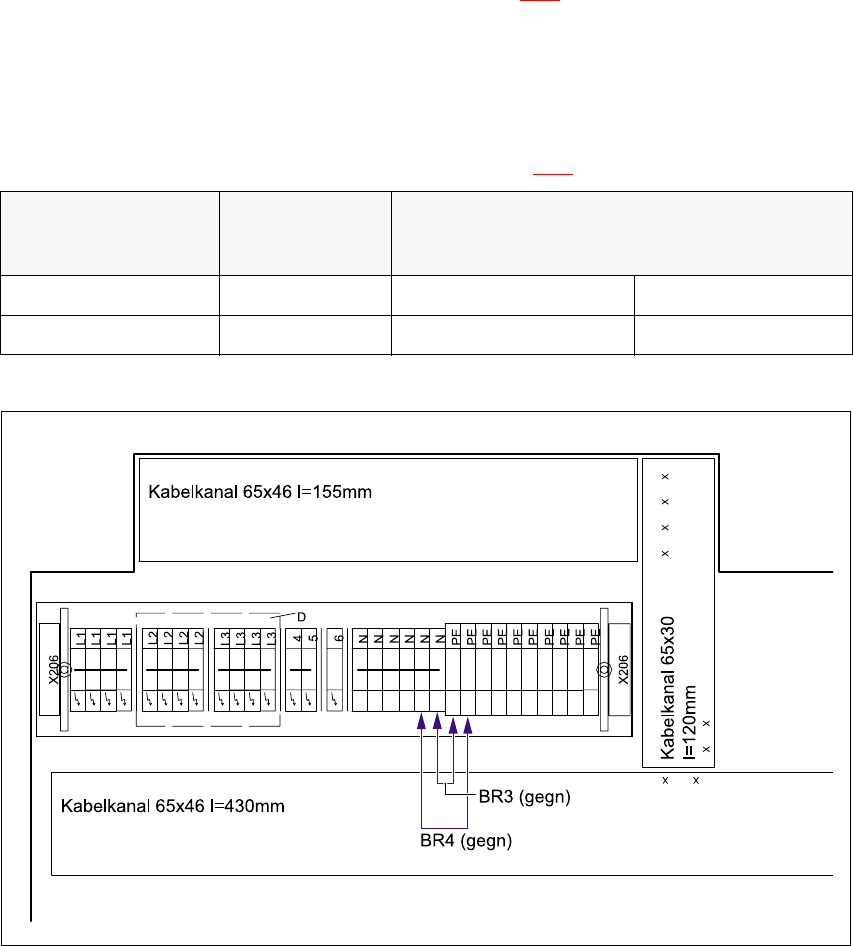 Å Setzen Sie im rechten Klemmenfeld in der Klemmleiste X206 die gelbgrünen Adern BR3 und