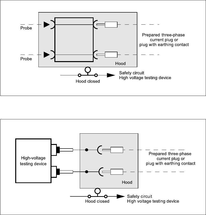 closes the safety circuit of the testing device. If the protective hood is opened, the protective hood