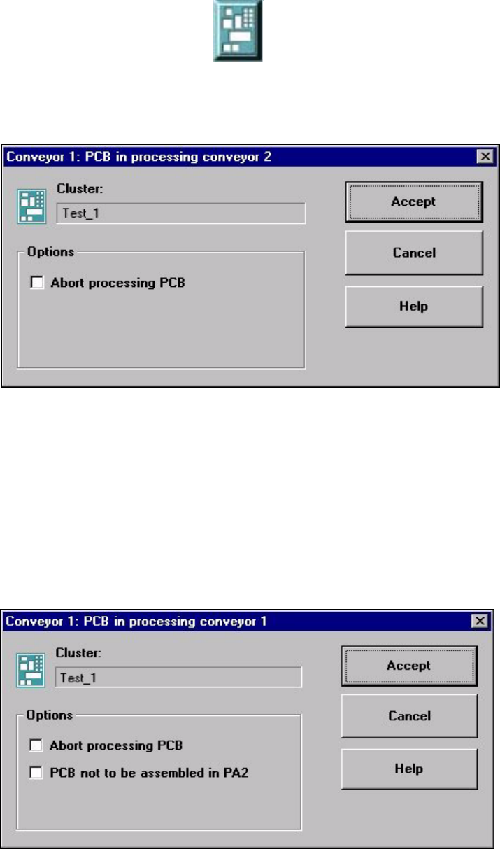 If the PCB is located on processing conveyor 2, the following dialog box is opened.